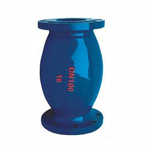 微阻球形止回阀 采用橡胶包皮球为阀瓣,在介质的作用T可在阀体内的滑道上滚动从而打开或关闭阀门。流量大流阻损失小密封性能好消声关闭可减小水击波。水平或垂自安装均可。可用于冷水、热水、工业及生活污水等管网的水泵出口防止介质倒流。
