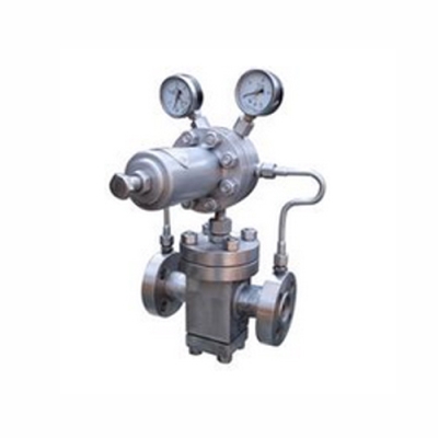 YK43Y高压气体减压阀由主阀和导阀两部分组成.主阀主要由阀座、主阀盘、活塞、缸套、弹簧等零件组成。导阀主要由阀座、阀瓣、膜片、弹簧、调节弹簧等零件组成。通过调节调节弹簧压力设定出口压力,利用膜片传感出口压力变化,通过导阀启闭驱动活塞调节主阀节流部位过流面积的大小,实现减压稳压功能。