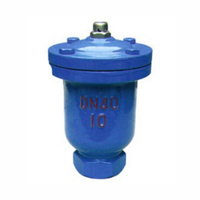 QB1单口排气阀主要由阀体、阀门、上盖、阀杆、浮球、排气嘴等组成。当需要排出管道内的气体时,管道内的空气在水的压强作用下进入体腔内,并从排气嘴排出,随之管道内的水充满体腔内,使浮球在水的浮力作用下,向上移动将排气嘴堵塞,达到自行密封,管道在正常行中,水中的空气在压强的作用下,不断排入排气阀的体腔上部,迫使浮球下降,离开原来密封位置,这时空气又从排气嘴排出,随之,浮球又恢复到原来位置自密封,因此,排气阀在正常工作中阀门始终是开着的,浮球不断重复上述动作,空气不断排出。当需要检修或清扫体腔时,应将阀门关闭。