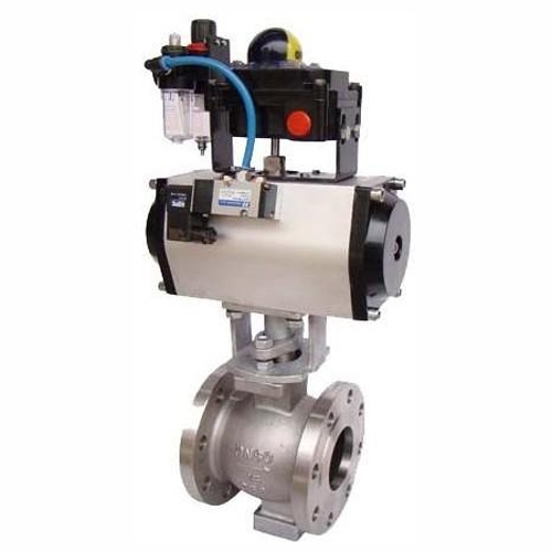 气动V型球阀采用圆柱型弹簧预载的带补偿性可动金属阀座结构,密封性能可靠。球芯与阀座不会产生卡阻或脱离,使用寿命长。