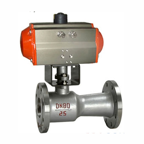 高温气动球阀的球体、密封圈采用了特殊的加工工艺和最新密封材料,使球体表面粗糙度和圆度达到标准要求,从而提高了密封性能和使用寿命、耐高温的能力。顺时板动手柄带动阀杆驱动球体旋转,使介质顺利通过。